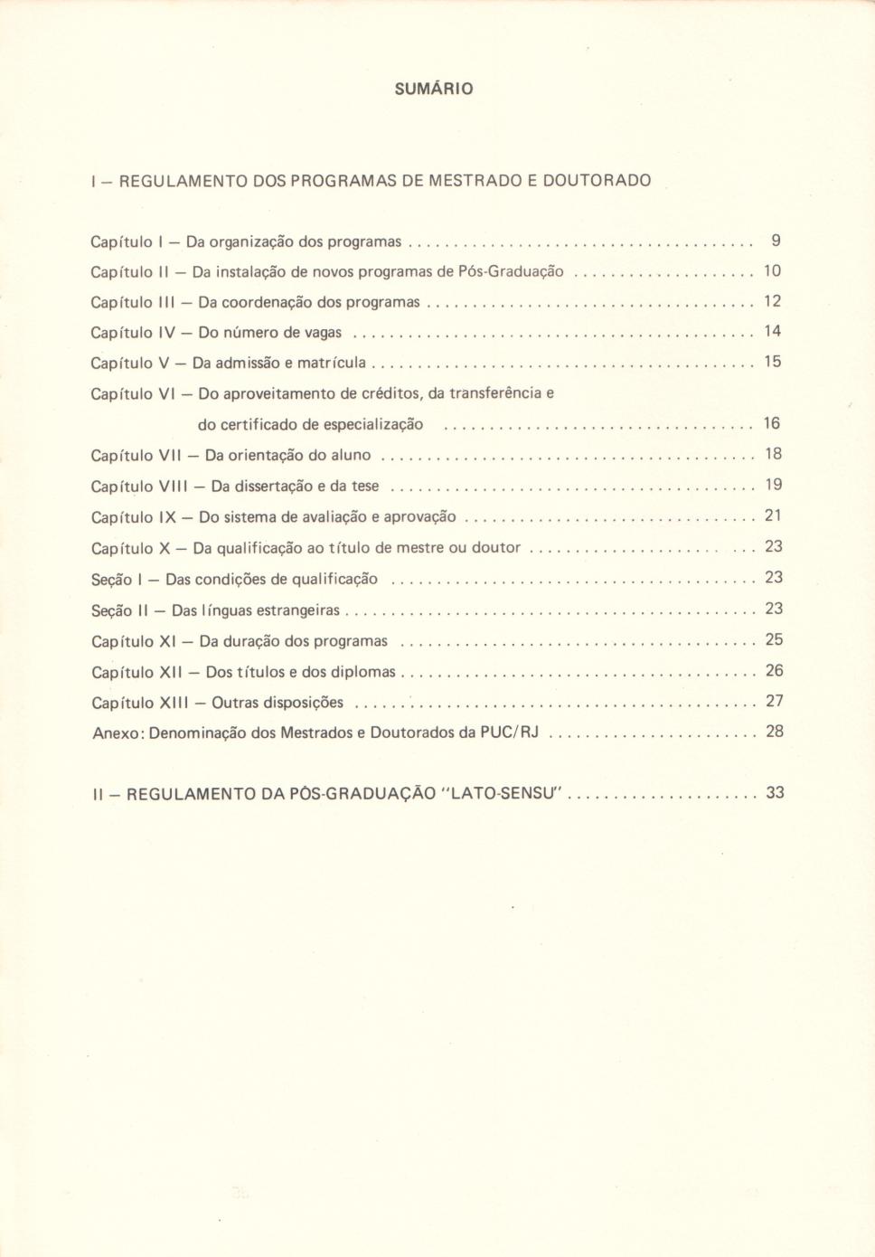 Sumário in A Pós-Graduação na PUC-RJ V - Regulamento dos Programas