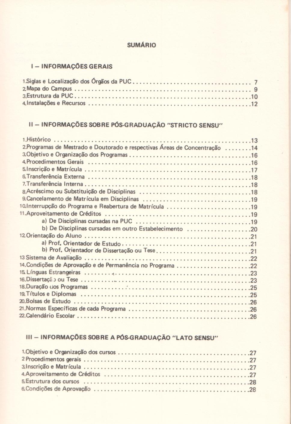 Sumário in A Pós-Graduação na PUC-RJ III - Manual da Pós-Graduação - Informações para os alunos