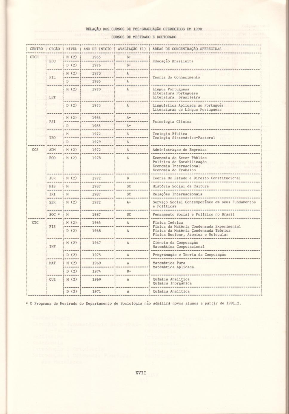 Relação dos cursos de pós-graduação em 1990 in Catálogo Escolar de Pós-Graduação da PUC-Rio -1987/91