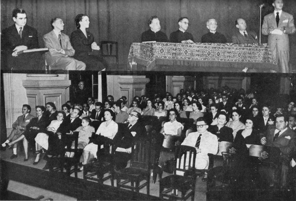 Posse da primeira diretoria da Associação dos Antigos Alunos da PUC-Rio realizada em 26 de outubro de 1951 no auditório do Colégio Santo Inácio.