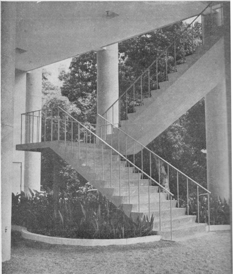 A nova sede: uma das escadas de acesso ao Cardeal Leme in Anuário PUC-Rio 1955