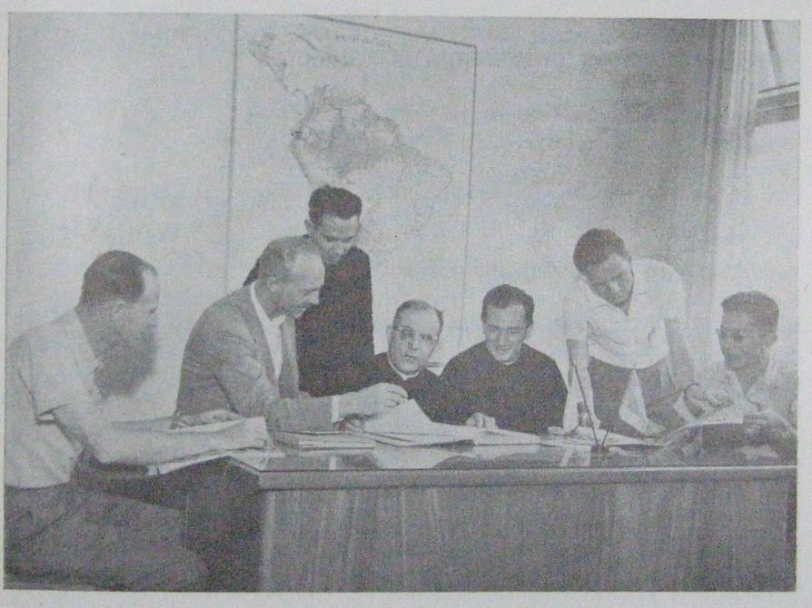 Da esq. para dir.: Oswaldo de Albuquerque Lima (1º, técnico do COTELUC), pe. Francisco Xavier Röser, S.J.(4º), pe. Thomas Lynch Cullen, S.J.(5º), Takaso Sano (6º, técnico do COTELUC).