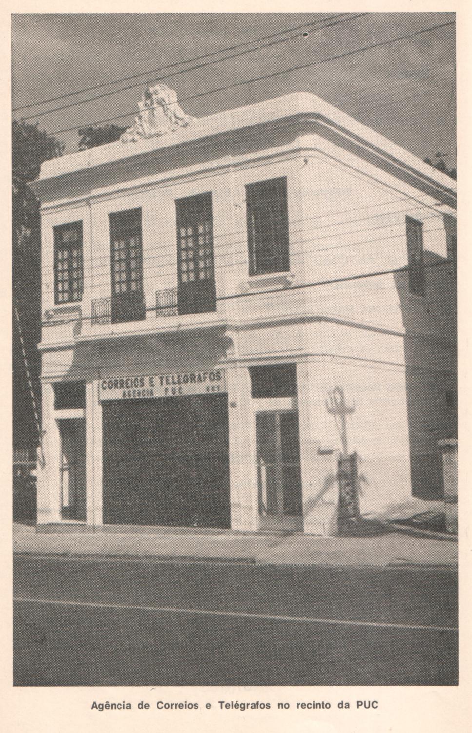 A solenidade de instalação da agência dos Correios no campus da PUC-Rio ocorreu no dia 02/12/1970 com a benção do prédio dada pelo Vice-Reitor Administrativo, pe. Felix de Almeida, S.J., na presença de autoridades do Ministério das Comunicações e da PUC-Rio.