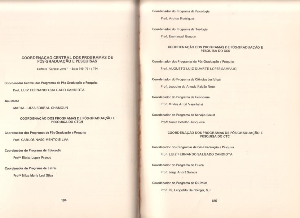 Coordenação Central dos Programas de Pós-Graduação e Pesquisas In Anuário PUC-Rio 1972