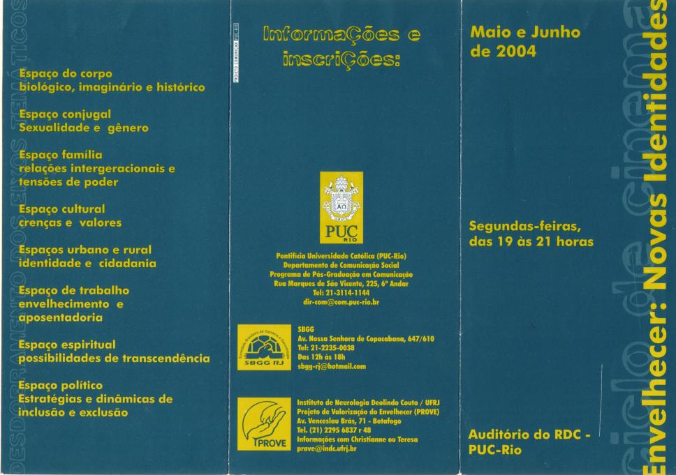 Ciclo de cinema organizado pelo programa de Pós-Graduação em Comunicação intitulado Envelhecer: Novas Identidades, com objetivo de refletir sobre o processo de envelhecimento e as transformações e novas questões que ele traz para o conjunto das sociedades.