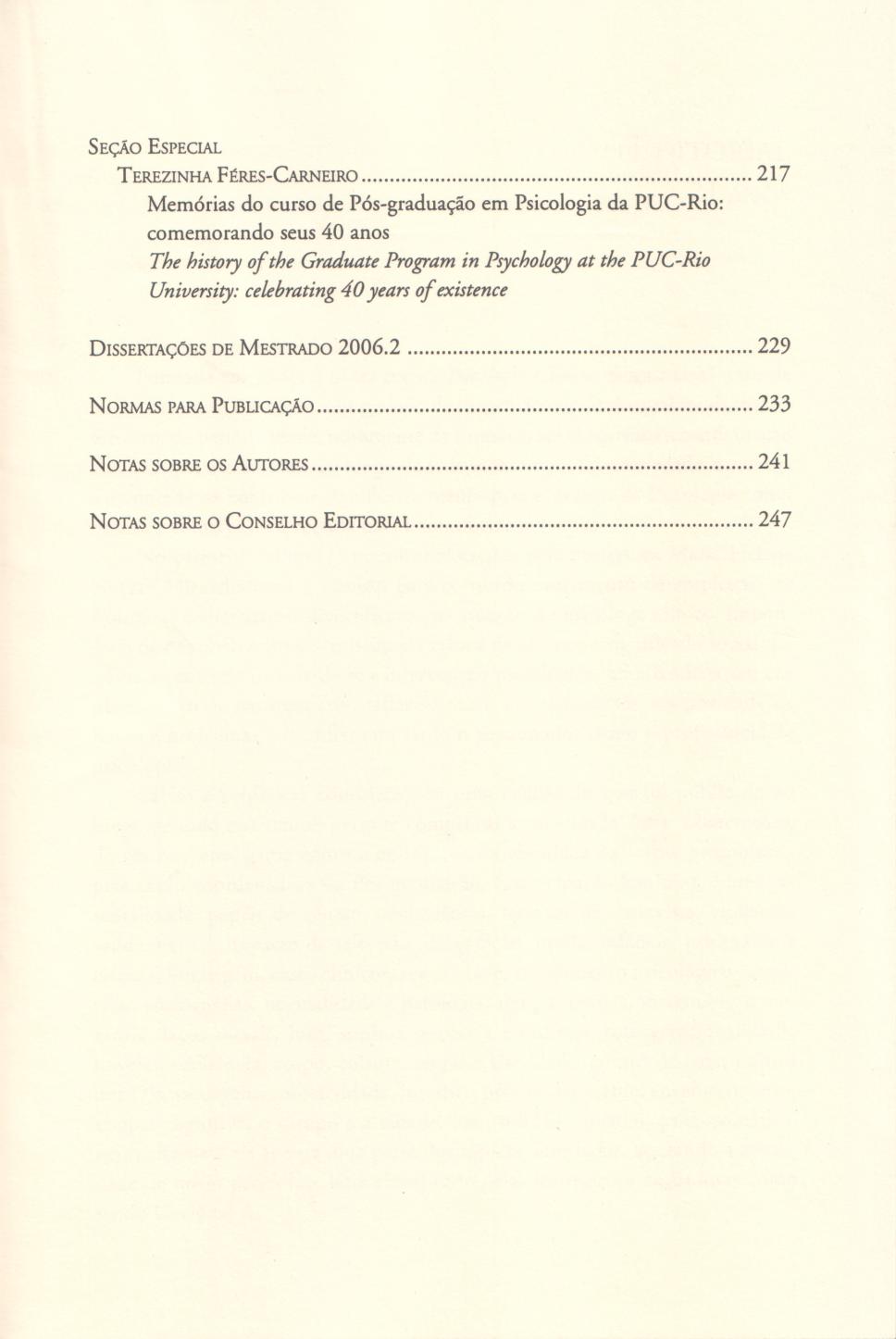 Sumário. 40 anos da Pós-Graduação em Psicologia.