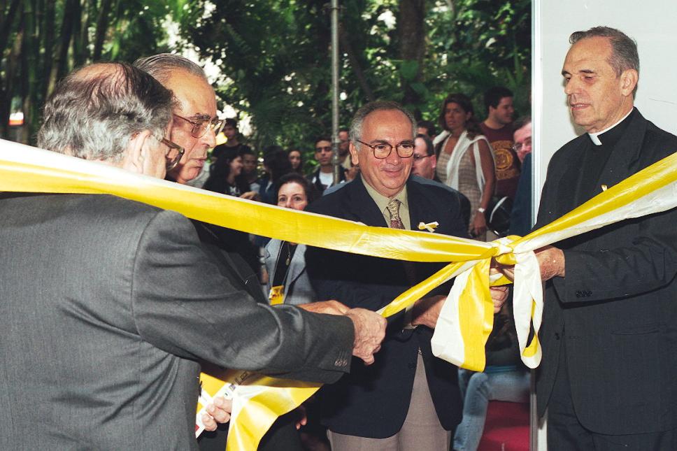 Professor Augusto Sampaio corta faixa inaugural da III Mostra PUC.