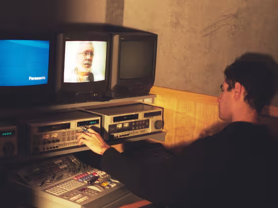 ac0008_012 | 10/8/1999 | Estagiário da TV PUC na ilha de edição de imagem. |