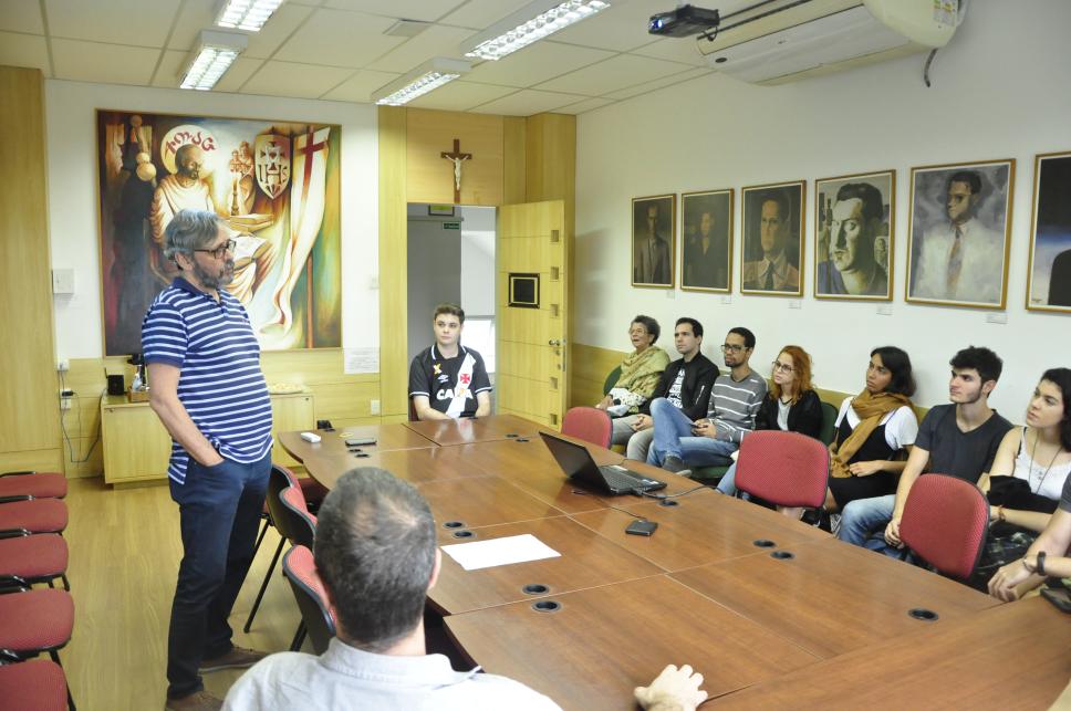 Recepção dos alunos de filosofia de 2017.2. Mesa com laptop e HD Externo.