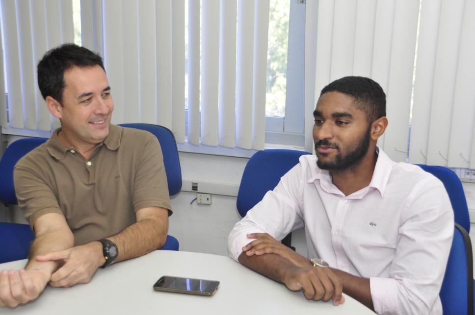 Luiz Francisco Ferreira Léo - professor de departamento de Comunicação Social e coordenador do projeto, e o Aluno Matheus Paulo Melgaço.