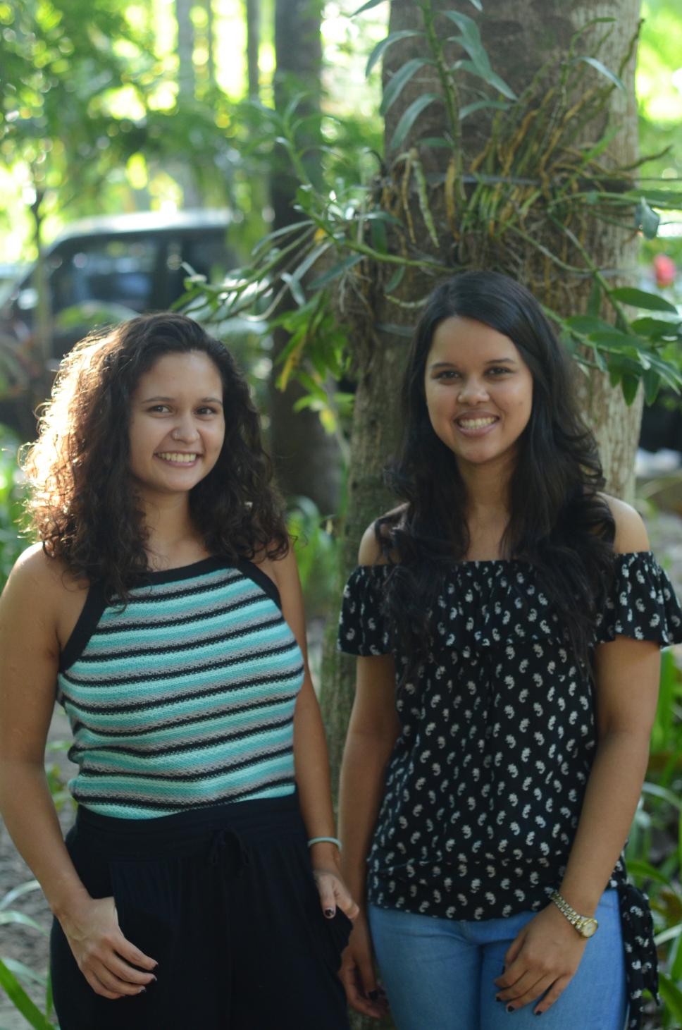 À direita a aluna de engenharia Isabela Borges, e à esquerda a aluna Luiza Moreira, também aluna de engenharia.