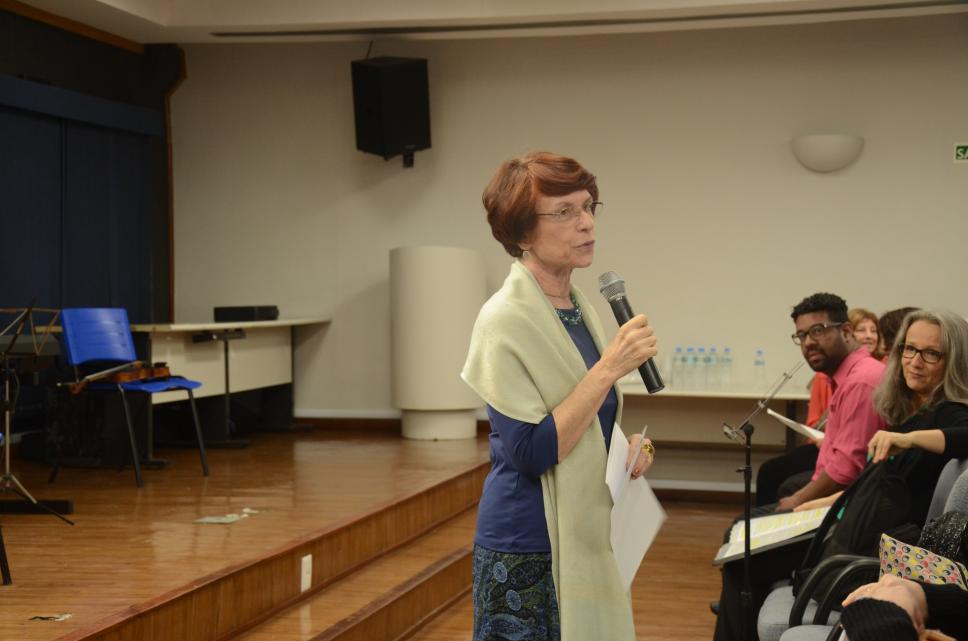 Professora Sonia Kramer em expressão da cultura Yiddish como resgate de histórias.
