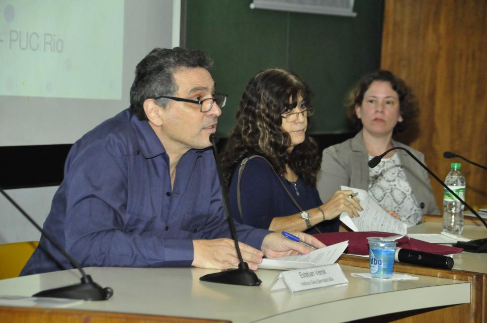Andrea Hoffmann - professora do departamento de RI; Esteban Vernick - Instituto Gino Germani/UBA; Miriam Saraiva - professora da Uerj