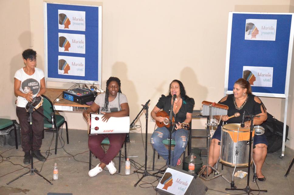 Grupo de samba, Quarteto Marielle Malês, composto por mulheres negras, em tributo à morte de Marielle Franco.