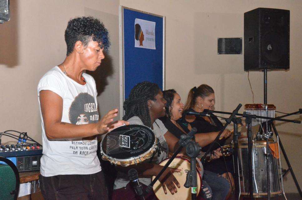 Grupo de samba, Quarteto Marielle Malês, composto por mulheres negras, em tributo à morte de Marielle Franco.