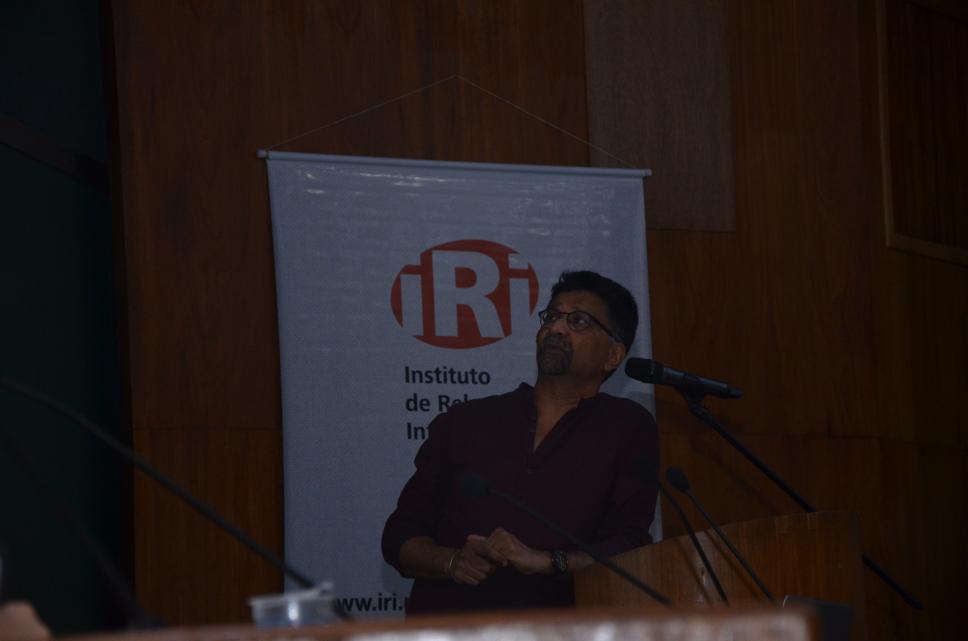 O professor indiano Sankaran Krishna, da Universidade do Havaí discutindo como se pensar e agir politicamente em tempos de crise existencial e sobre o que o pensamento pós-colonial oferece a esse respeito. A palestra teve o tema de Capitalism and Indigeneity in the Anthropocene: Postcolonial reflections.