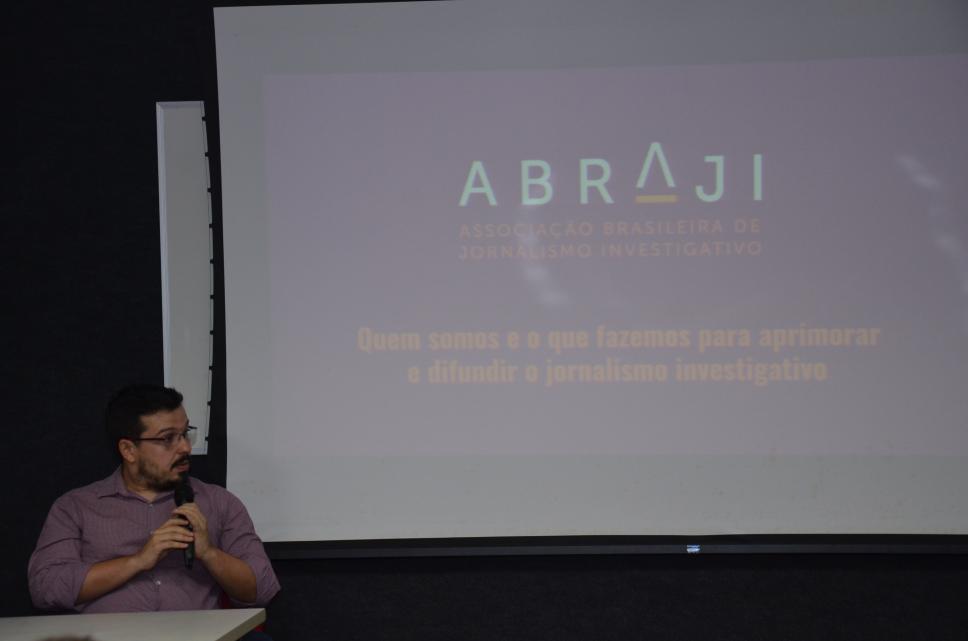 Guilherme Amado, vice-presidente da Abraji, na palestra sobre jornalismo investigativo, promovida pelo Departamento de Comunicação Social.