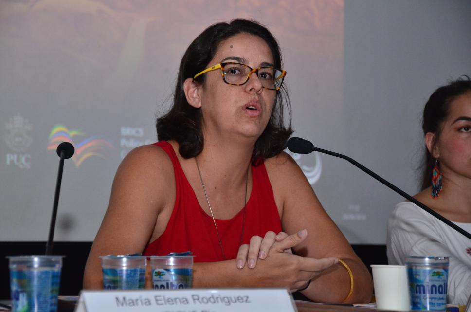 Virginia Totti Guimarães, professora de Direito Ambiental e Direito Urbanístico da PUC-Rio na palestra 'A Proteção Socioambiental da Pan-Amazônia: tendências e cenários', promovido pelo Instituto de Relações Internacionais da PUC-Rio e pelo BRICS Policy Center.
