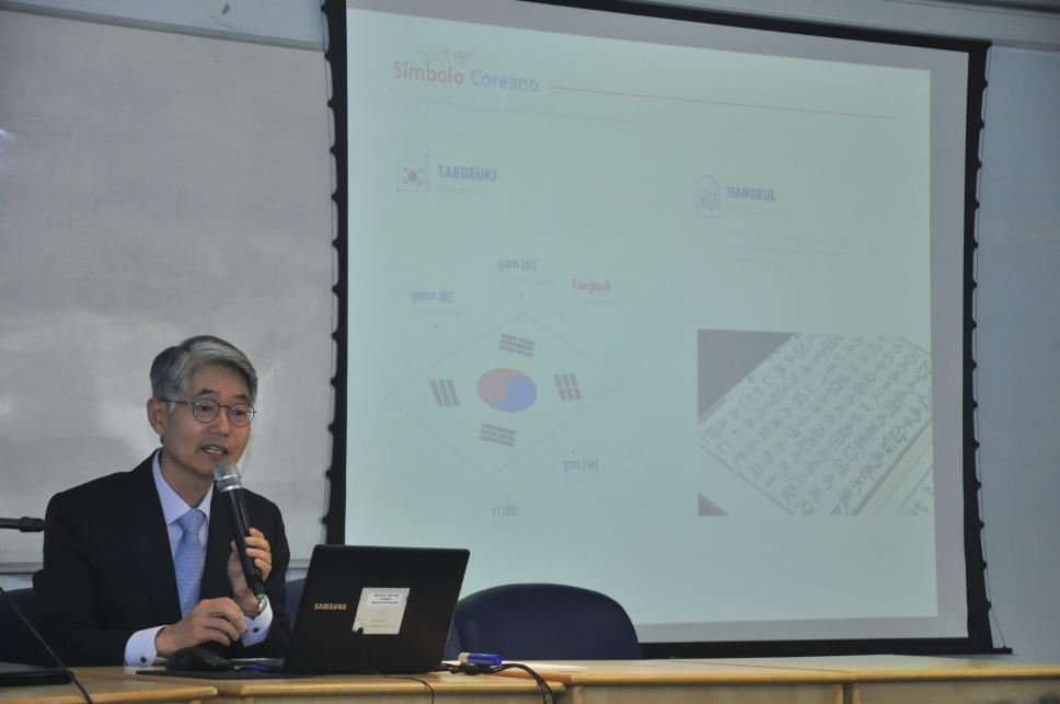 O embaixador da Coreia do Sul, Kim Chan-Woo, na palestra 60 anos das relações entre Brasil e Coreia do Sul.