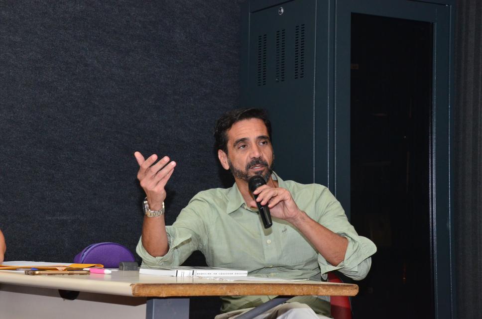 O professor Alexandre Carauta do Departamento de Comunicação na palestra "Memórias da imprensa escrita."