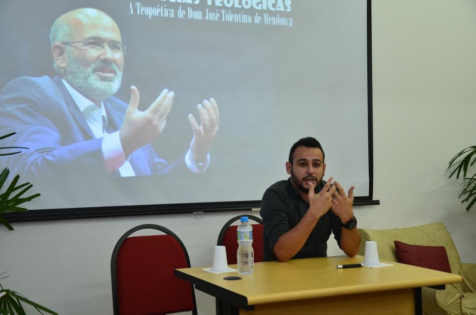 Lindoberg Campos, doutorando em Letras PUC-Rio, na palestra "A teopoética de Dom José Tolentino Mendonça".