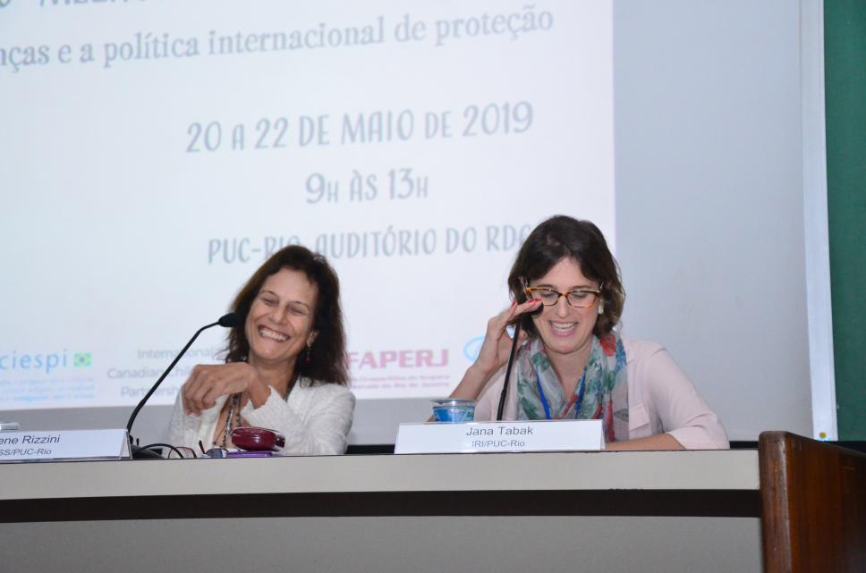 A professora Irene Rizzini, do Departamento de Serviço Social, e a professora Jana Tabak, do Departamento de Relações Internacionais da UERJ no seminário No melhor interesse de quem? , promovida pelo IRI/PUC-Rio com o Departamento de Serviço Social PUC-Rio em parceria com o CIESPI, International and Canadian Child Rights Partnership (ICCRP), FAPERJ e CAPES.