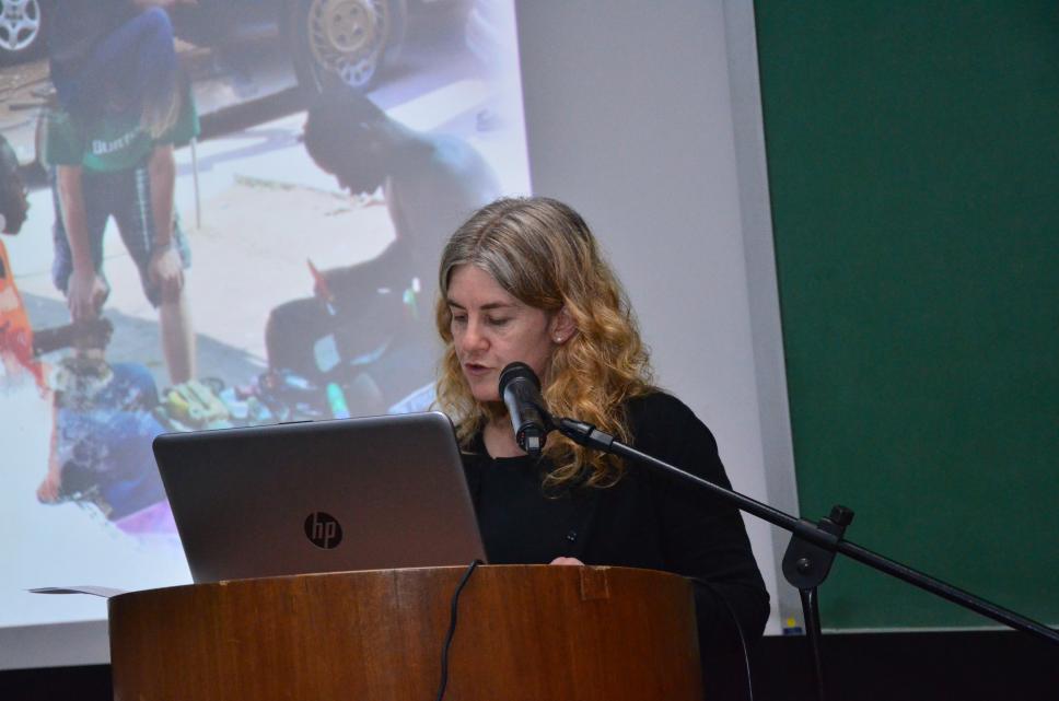 A professora Lorraine van Blerk da University of Dundee, na Escócia, na palestra Infâncias Roubadas? As Experiências de Crianças e Adolescentes “Fora do Lugar” do Seminário "No 'melhor interesse' de quem?" , realizado pelo Departamento de Relações Internacionais.