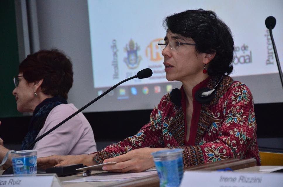 A professora Mónica Ruiz-Casares da McGuill University, no Canadá, na palestra Infâncias Roubadas? As Experiências de Crianças e Adolescentes “Fora do Lugar”, do Seminário promovido pelo Departamento de Relações Internacionais.