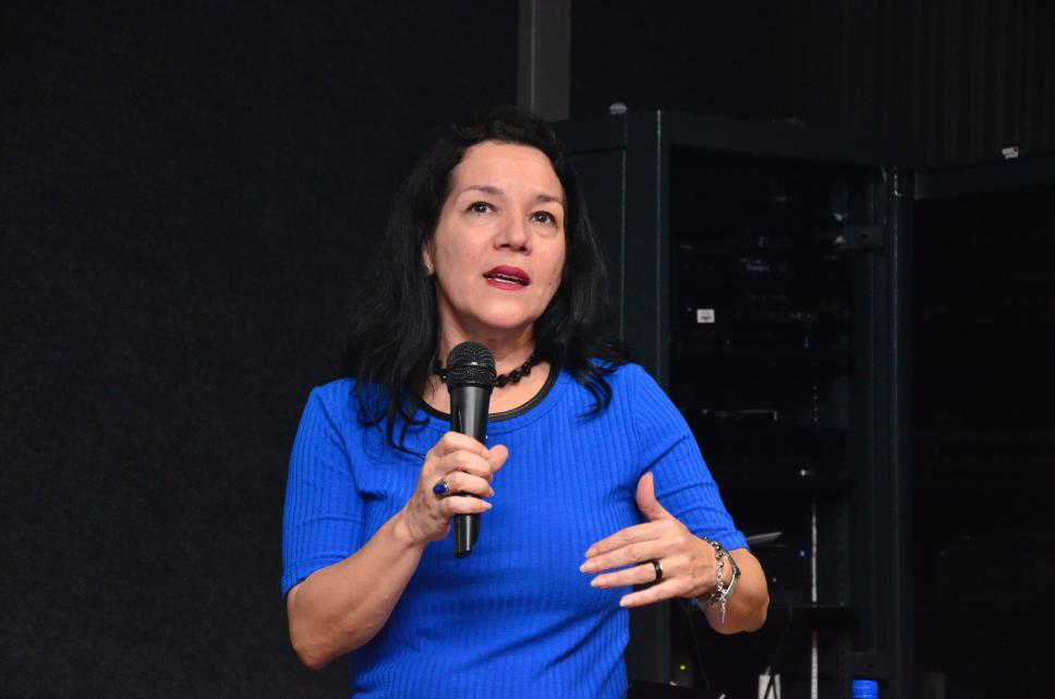 A professora Adriana Braga, do Departamento de Comunicação na 6ª edição do ciclo de palestras MiDForum.