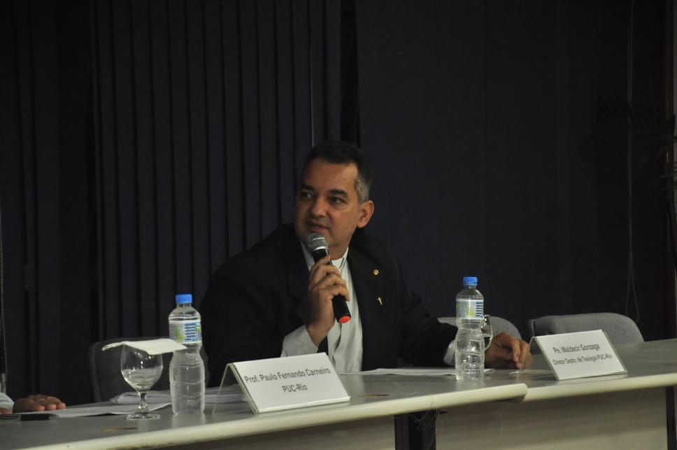 Pe Waldecir Gonzaga, diretor do Departamento de Teologia, na palestra sobre religião e violência.