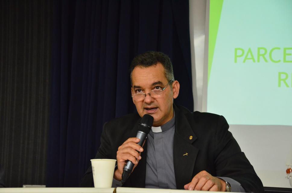 O padre Waldecir Gonzaga, diretor do Departamento de Teologia, na abertura da Semana Arquidiocesana do Meio Ambiente e lançamento da nova campanha de coleta de lixo das Igrejas do Rio de Janeiro.