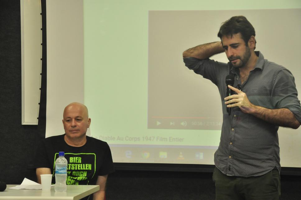 O professor Ariel Schweitzer, historiador do cinema e crítico da revista Les Cahies du Cinéma e o professor Pedro Henrique Ferreira, do Departamento de Comunicação Social.