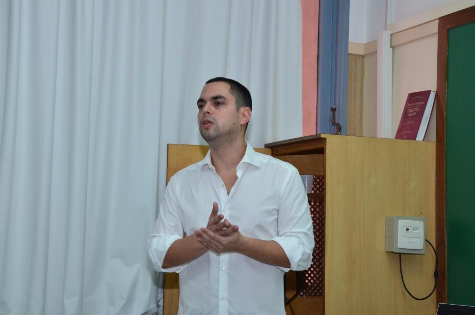 O professor e vereador Tulio Mota no Encontro da Liga de Políticas Públicas promove debate sobre as experiências,desafios e perspectivas da educação brasileira.