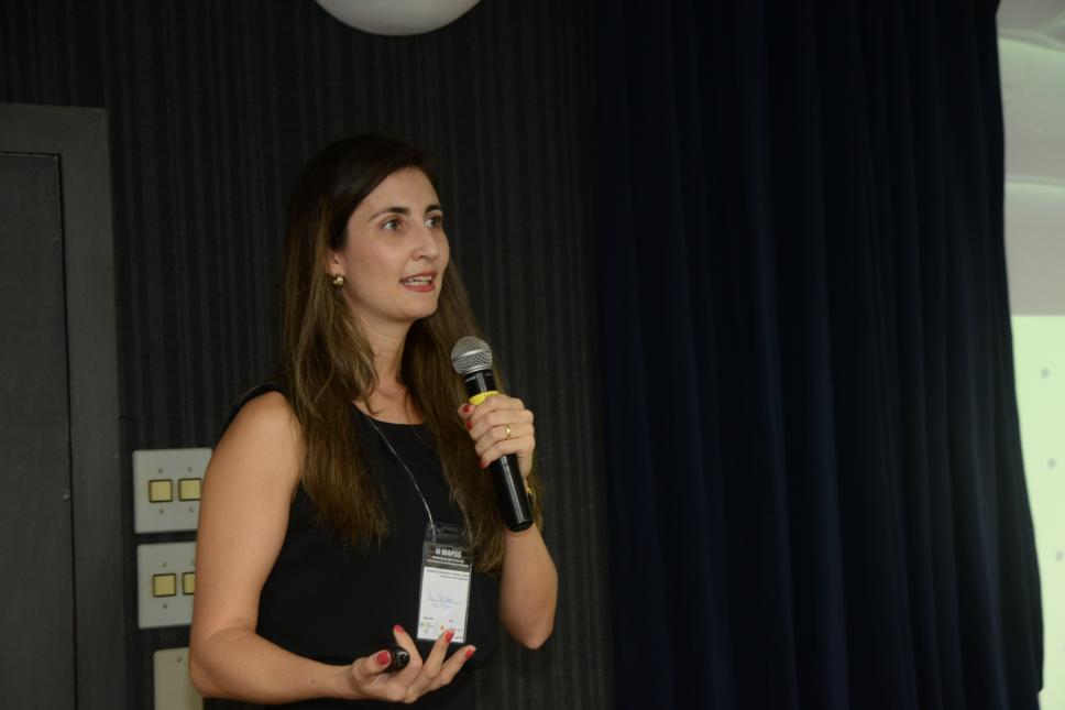 A professora Ana M. Percebom do Departamento de Química e coordenadora do M&N Lab, no workshop sobre Desafios na Indústria do Petróleo: desde a exploração até a aplicação.