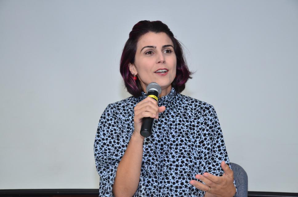 A jornalista Manuela D’Ávila na a Aula Magna do Departamento de Arquitetura e Urbanismo.
