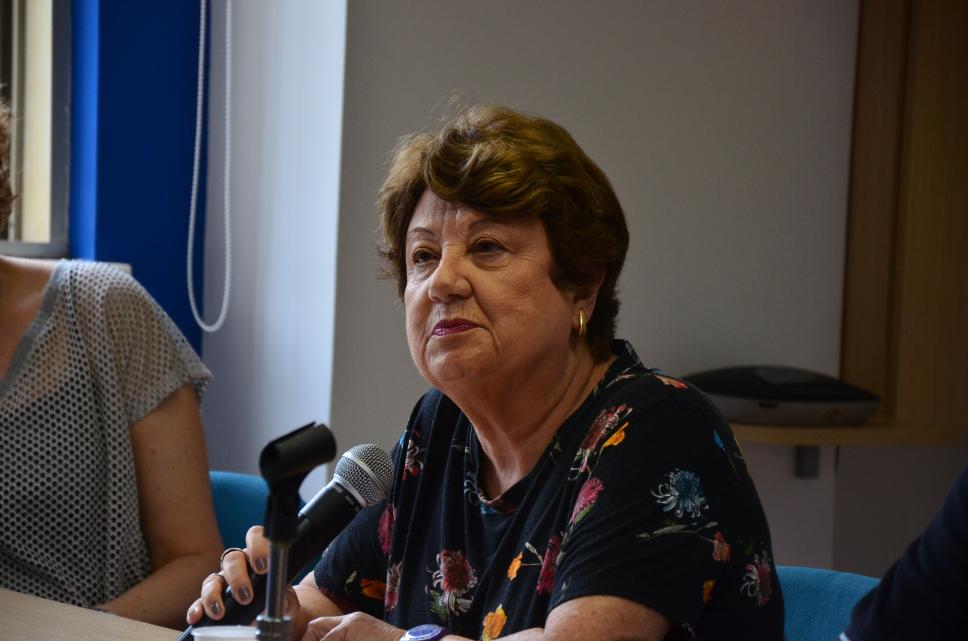 A professora Eneida Maria de Souza, do Departamento de Letras, na Mesa de Abertura - Homenagem a Marília Rothier do 8º Seminário Letras Expandidas - Campos minados e urgências do pensamento.
