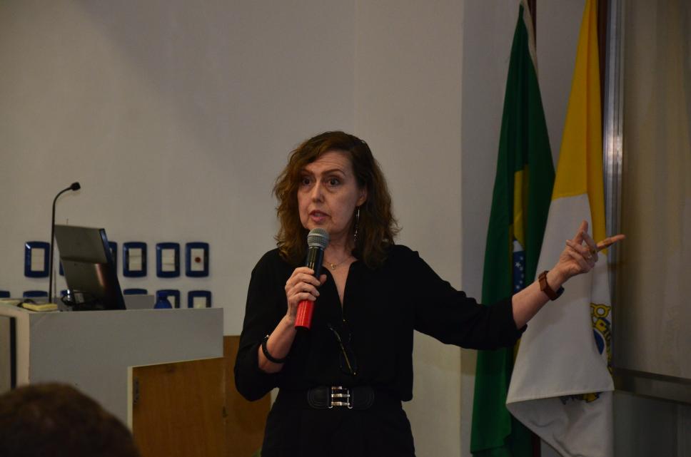 Professora Regina Lúcia Montedonio Borges, na palestra Educação, Foco e Realidade à Luz de Mindfulness, ciência e arte.