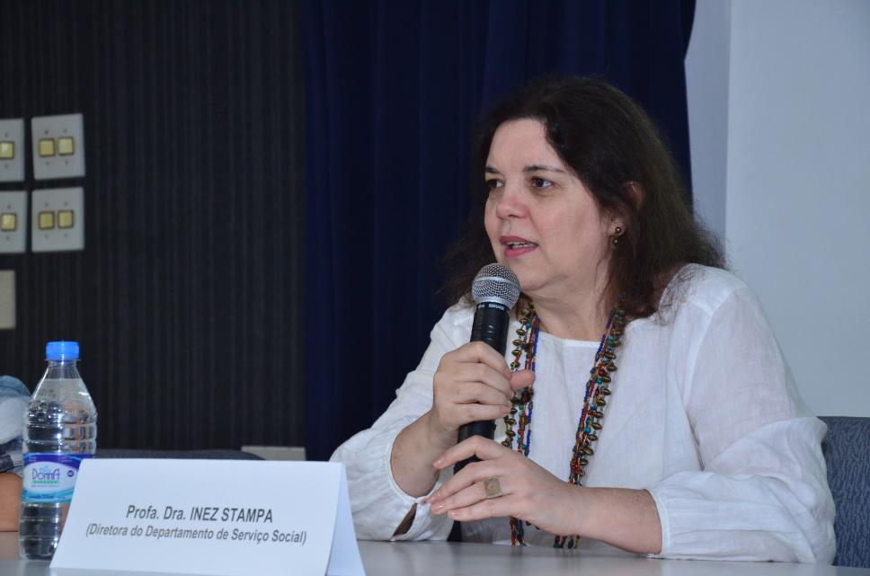 A profa. Inez Stampa participa do Seminário Trabalho e Serviço Social sob ataque.