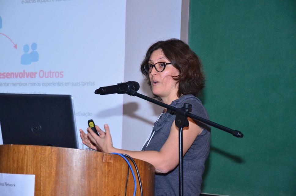 A profa. Paulina Achurra, membro do Insper, no workshop Novas Diretrizes Curriculares Nacionais nos Cursos de Engenharia no Brasil.