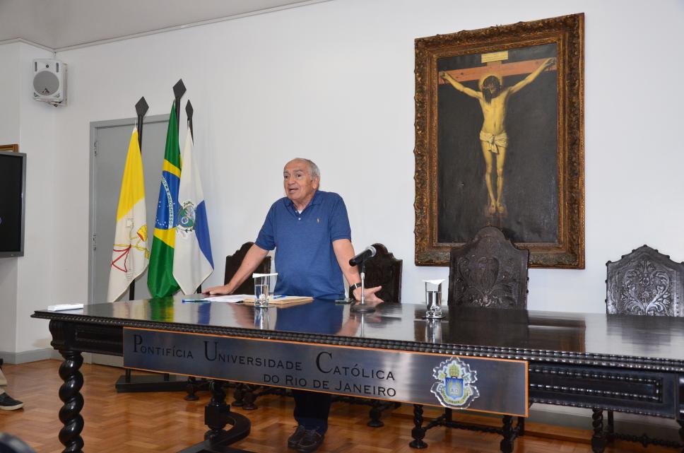 O professor Augusto Sampaio na cerimônia de posse dos alunos eleitos para os diretórios estudantis em 2020.