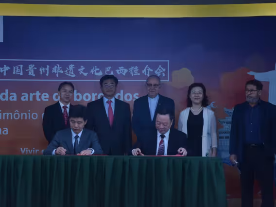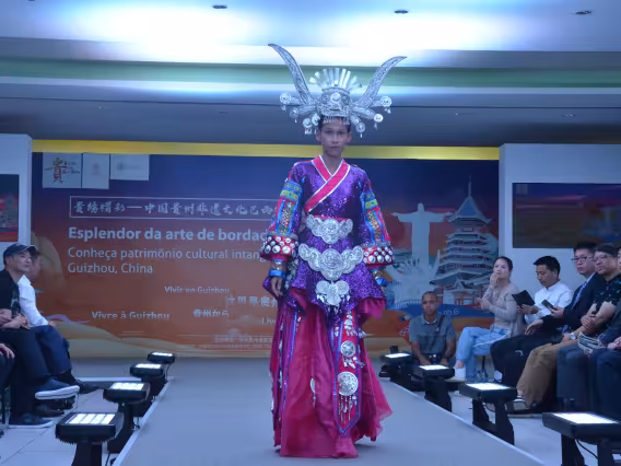Desfile de vestimentas tradicionais chinesas e exposição de fotos nos pilotis do Kennedy, promovido pelo Instituto Confucius.
