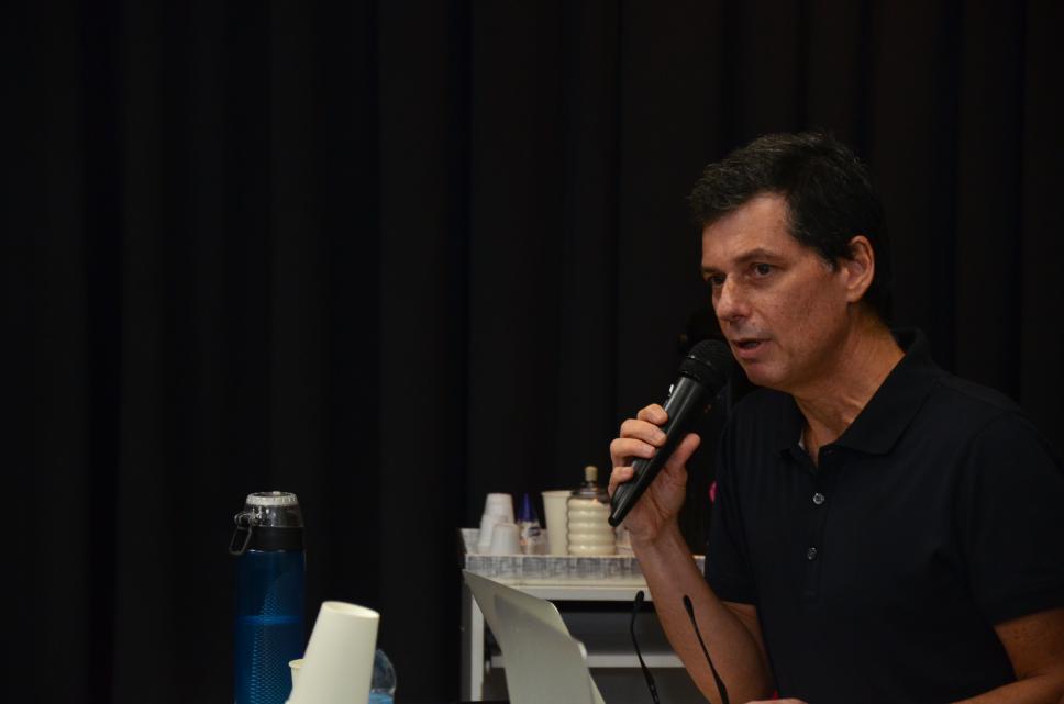 Luis Nachbin, formado em jornalismo pela PUC-Rio, professor do Laboratório de Telejornalismo, documentarista, fundador da Matrioska Filmes e mestre em Televisão e Projetos Experimentais pela San Francisco State University participou mesa 6 sobre inovações em videorreportagem.