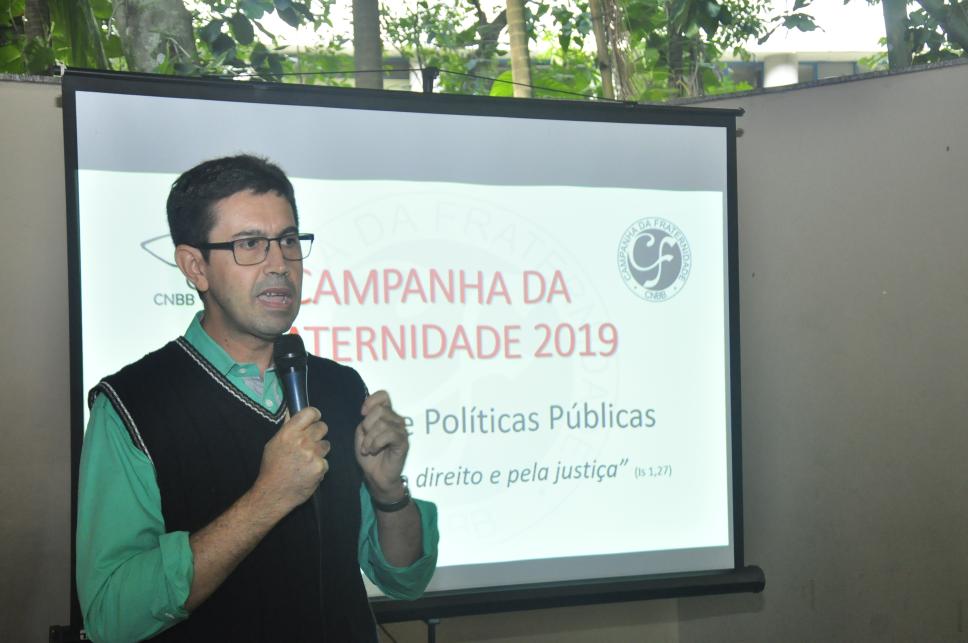 Padre José Abel, coordenador da Pastoral Universitária, na palestra sobre políticas públicas.