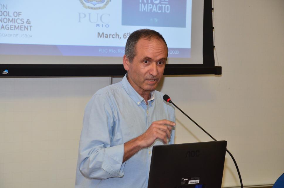 O professor Pedro Verga Matos, doutor em Ciências Empresariais pela Universidade do Porto, participa do debate sobre a implementação de políticas públicas de inovação em Portugal em comparação com as do Rio de Janeiro.