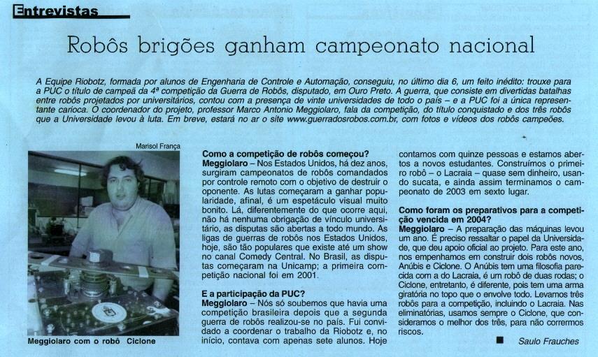 Artigo do Boletim PUC Urgente, "Robôs brigões ganham campeonato nacional".
