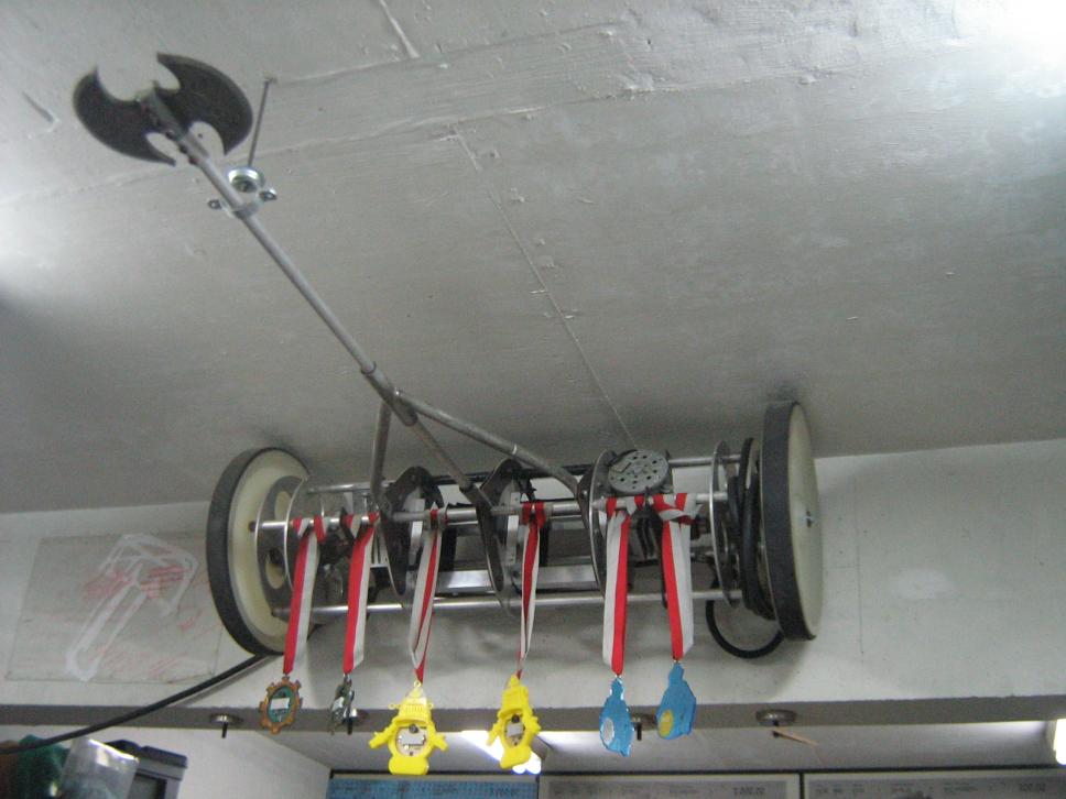 Robô Lacraia, com as medalhas da equipe Riobotz.