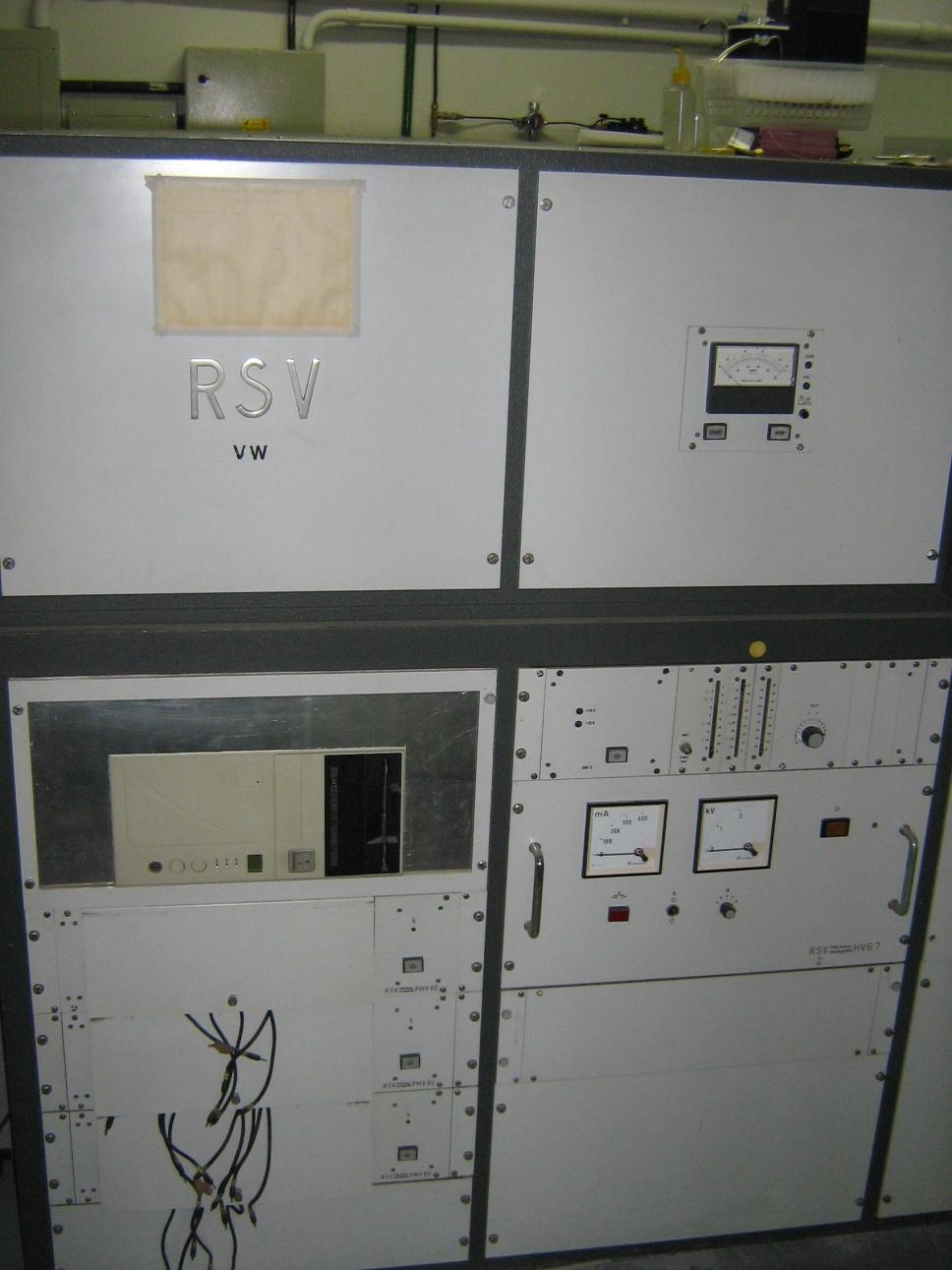 Equipamentos dos laboratórios. Está escrito no aparelho "RSV", "PMV 02" e "HVG 7".