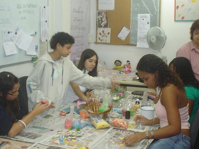 Alunos em oficina de produção de velas.