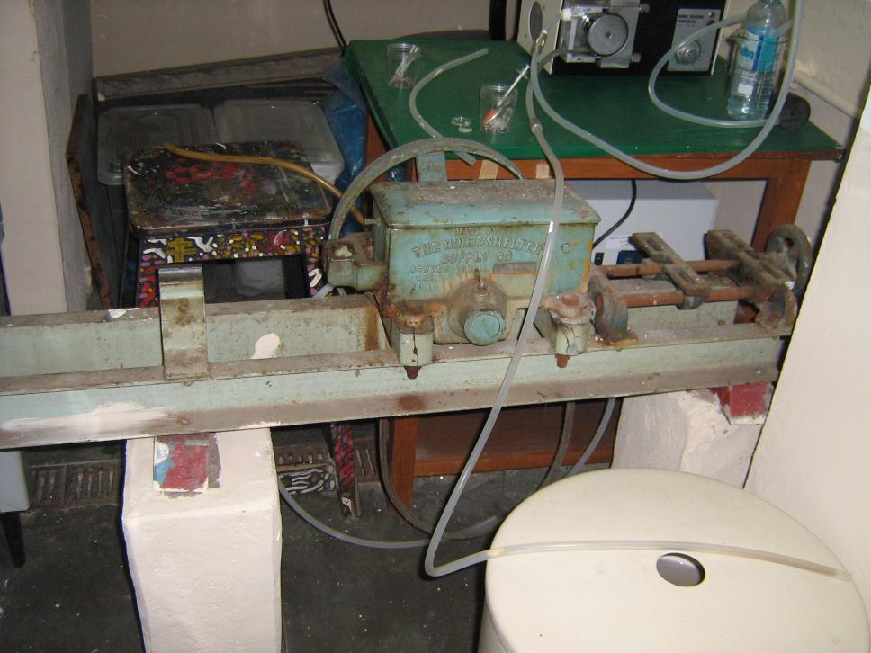 Laboratório de Engenharia Metalúrgica, localizado na casa XXI da Vila dos Diretórios. Equipamentos pesados.