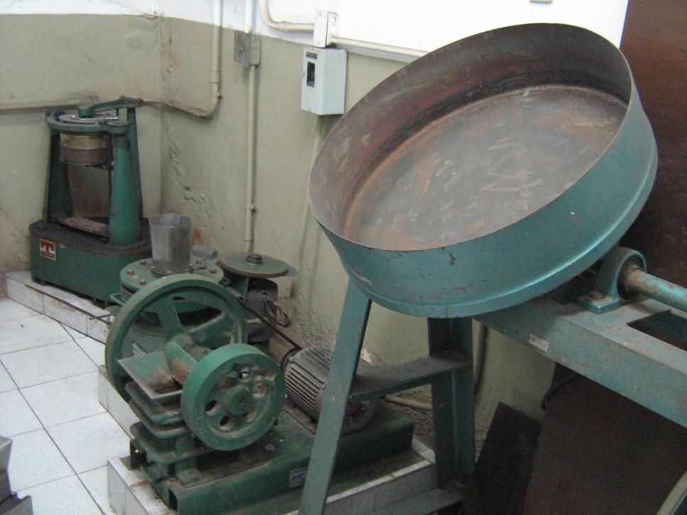 Laboratório de Engenharia Metalúrgica, localizado na casa XXI da Vila dos Diretórios. Equipamento a motor elétrico, não identificado.
